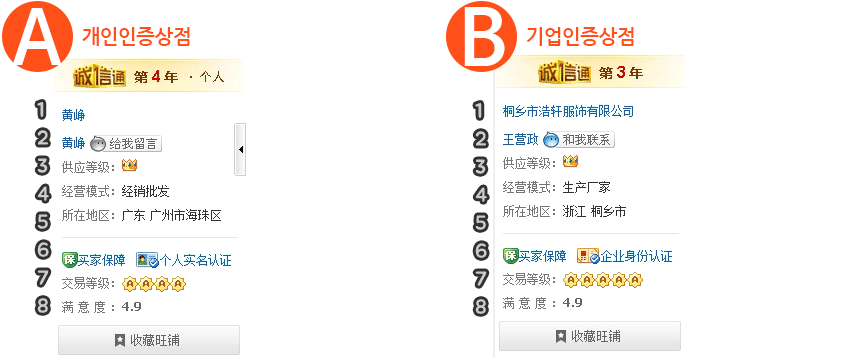 알리바바 역시 크게 2가지 그룹으로 판매자를 구분할 수 있습니다.
